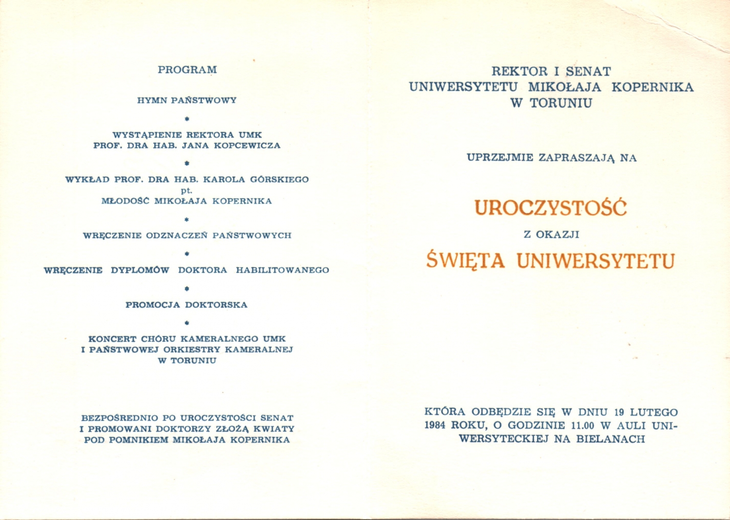 nominację na stanowisko rektora UMK otrzymał prof. Jan Kopcewicz;